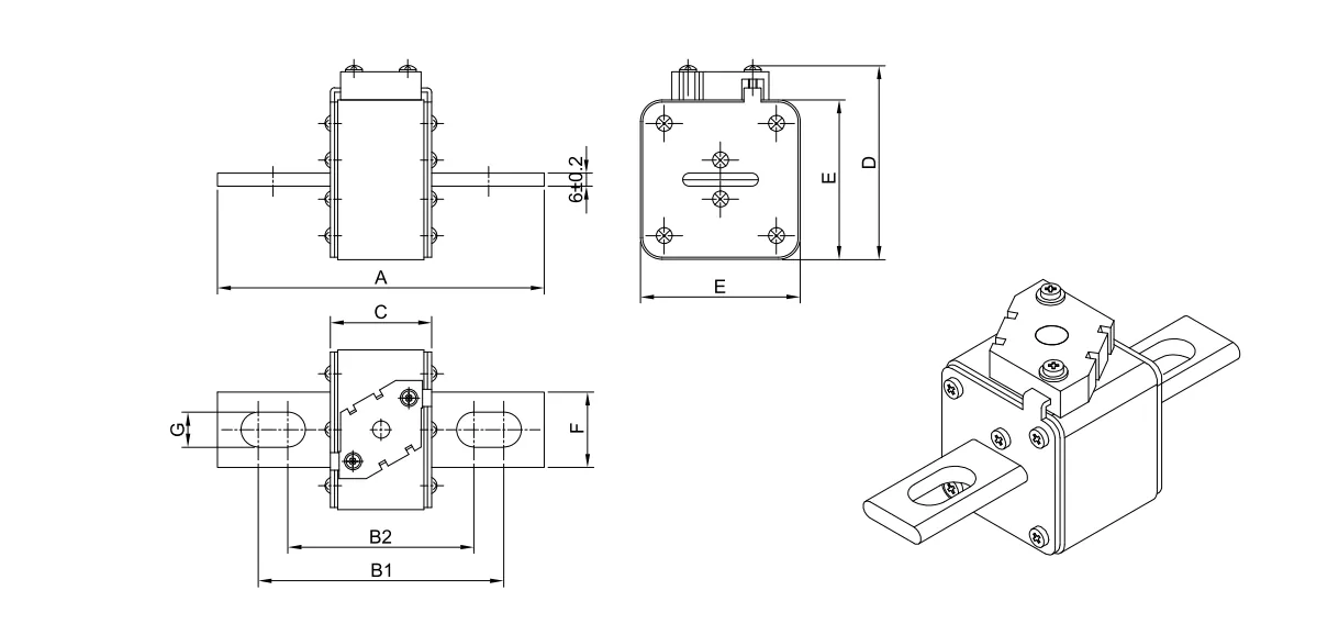 1250-V-Hochgeschwindigkeitssicherung mit bündigem quadratischem Gehäuse